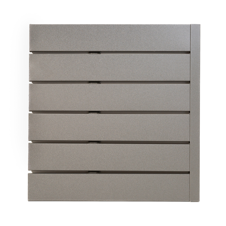 Modelul Arcadia Imperial este proiectat pentru o instalare rapidă și intuitivă. Stâlpii metalici sunt prevăzuți cu canale de ghidare integrate, astfel încât lamelele se fixează direct, fără a fi nevoie de șuruburi sau alte accesorii.